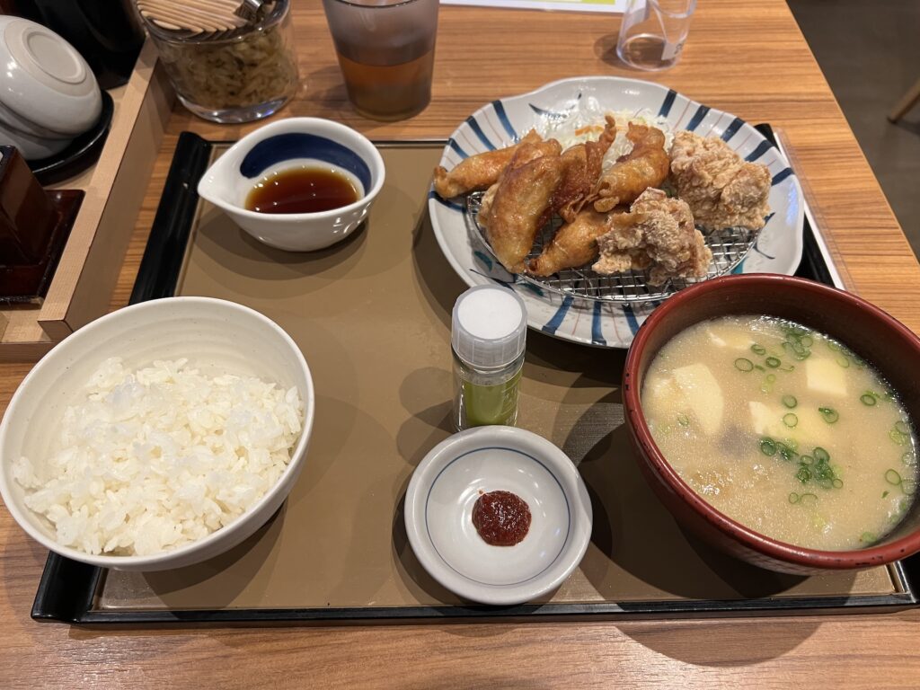 午後にクルマで「やよい軒 二十四軒店」に行く。「鶏皮餃子と鶏竜田揚げの定食(鶏皮餃子6個・鶏竜田揚げ2個)(内税1,240円の30円引きクーポン適用)」を「豚汁変更(内税190円)」で注文。店内は結構混んでいて奥の二人掛けの席に案内された。なんか部活帰りの高校生集団が多い。
