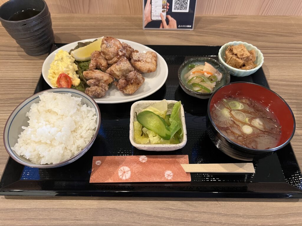 魚定食は前回と同じ「縞ほっけ焼き」なので今日は肉定食、「鶏あごだしザンギ タルタル添え」「小鉢(筍土佐煮・ほっけ煮びたし)」「ななつぼし」「寒ふのりの味噌汁」「白菜新付け」のセットで内税990円。本当は先週までやってた豚しょうが焼きが食べたかったんだけど仕方がない、そのうちまた出るだろ。