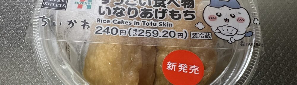 晩ごはんの後に、昼にセブンイレブンで買ってきた「すっごい食べ物 いなりあげもち(外税240円)」を食べてみる。美味しい、しょっぱいと甘いが同時に来る。