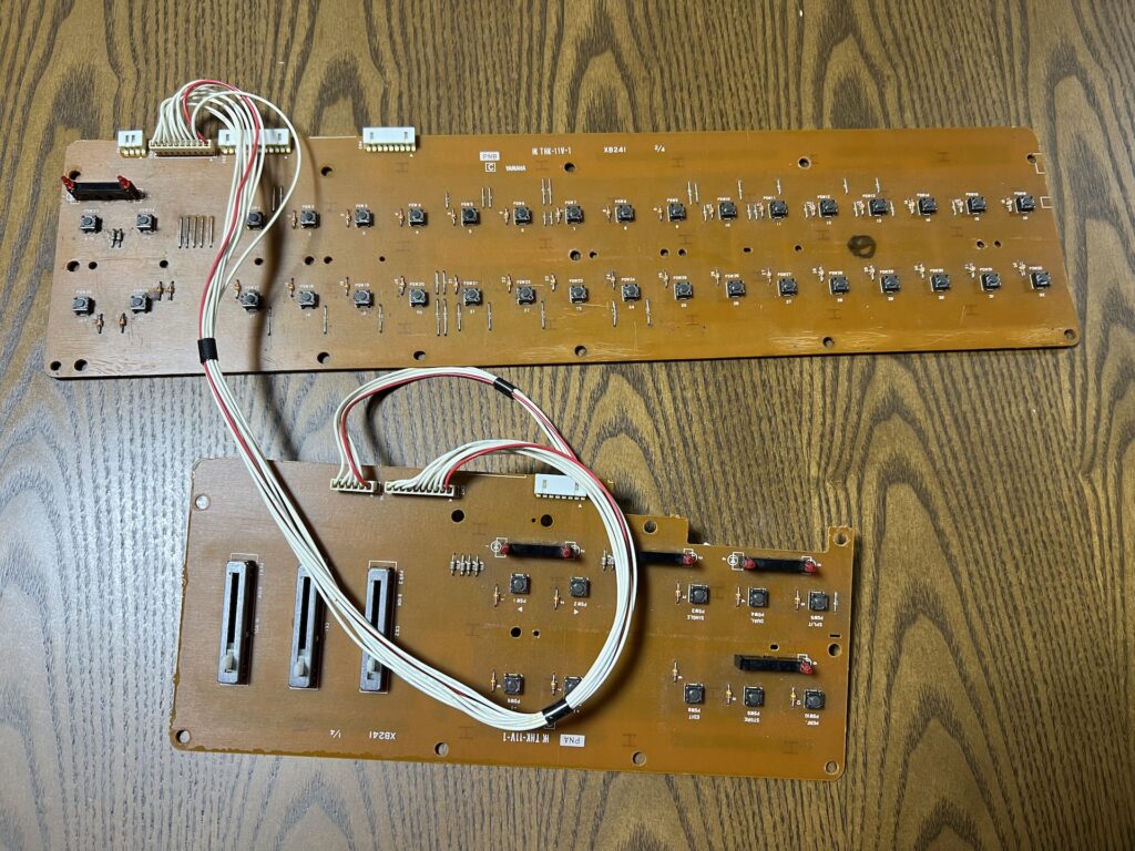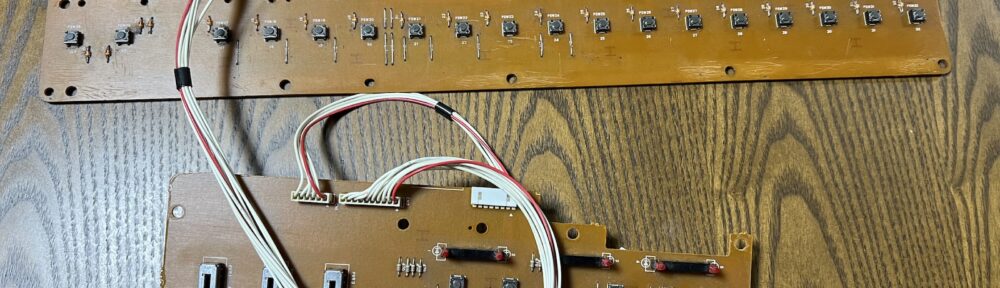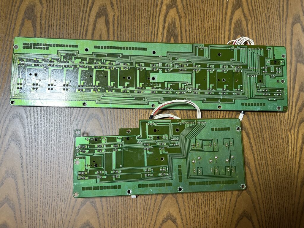 夜に気合を入れてDX7IIDのタクトスイッチ交換を実施、まずは取り出した基板を見物。のんびりとした片面基板なのでそれほど気負わなくても大丈夫っぽい。ただタクトスイッチの数が実に46個、タクトスイッチは4本足なのでハンダ箇所が184個もある。