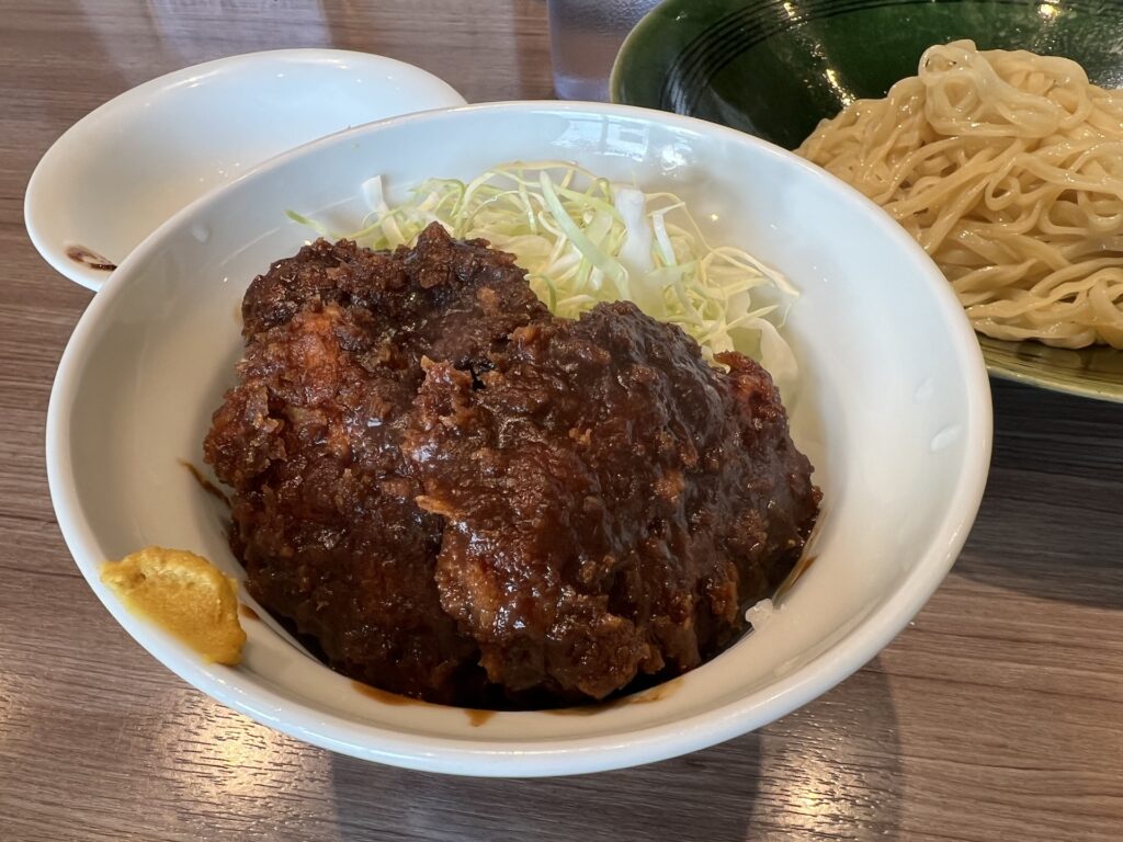 今日は珍しくつけ麺が注文出来る状態だったので「ルスツもち豚のつけそば(内税880円)」と「ミニみそカツ丼(内税440円)」を注文、ここも大分値段が上がっちゃったけど、まだ安い方だよね。