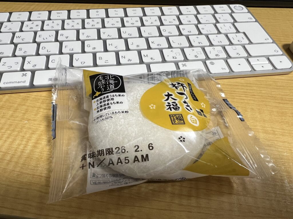 帰りにドラッグストアとコンビニで買い物をしてから帰宅。甘いものが食べたくなってコンビニで買ってしまった大福を頂く。甘いのが脳にガツンと来る。