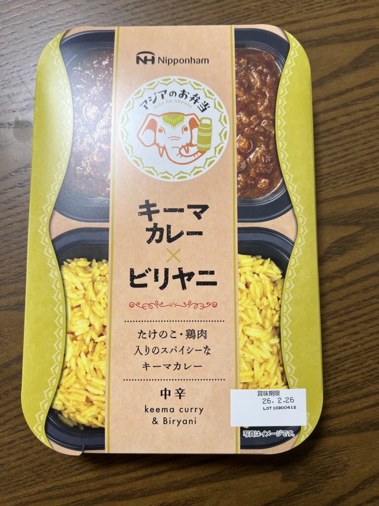 昼ごはんは昨日「まいばすけっと」で買ってきた日本ハムのキーマカレーとピリヤニセット、常温保存が出来るのがちょっと面白い。