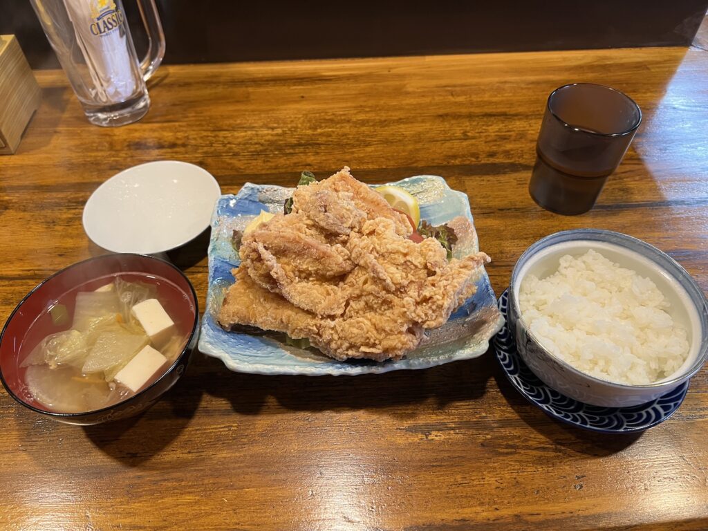 それでも朝ごはんを少なめにしたせいか、昼前にちゃんとお腹が空いてきた。外出する用事があったので「みなとや食堂3代目」に寄って「ザンギ定食(内税1,000円)」を注文。出てきたザンギが超デカくて目を疑う。ザンギというよりは台湾でお馴染み「大鶏排」では?