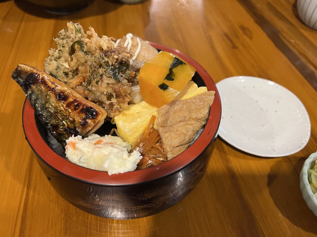 昼は本社から来ている後輩を誘って久々の「ごはんとだし やそはち」に、11:30の開店直前から並んで無事四人が座れた。オレは「やそはち弁当(内税1,200円)」を注文、4人で別々のメニューを頼むことになって申し訳ない気分。