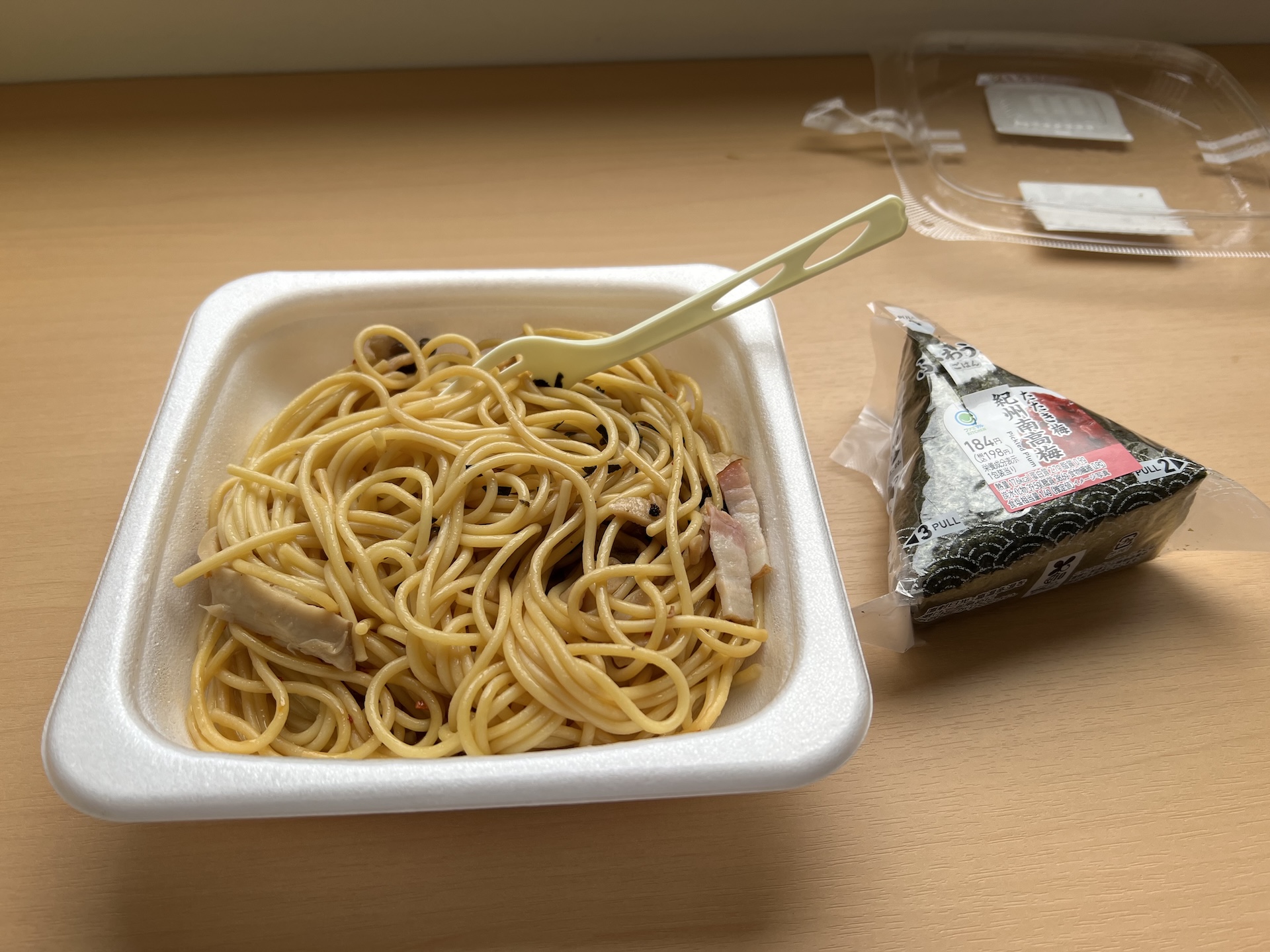 会社最寄りコンビニで買い物、ふと思い立って昼食用にチルドパスタとおにぎりのセットを購入、安い奴なら合わせて600円ちょいになるのでそこまで悪くもなさそう。レジに口頭で「コーヒー、ホットのブレンドS」と伝えたつもりが「ホットのブレンドL」で来てしまった。オレが悪いのだけども。