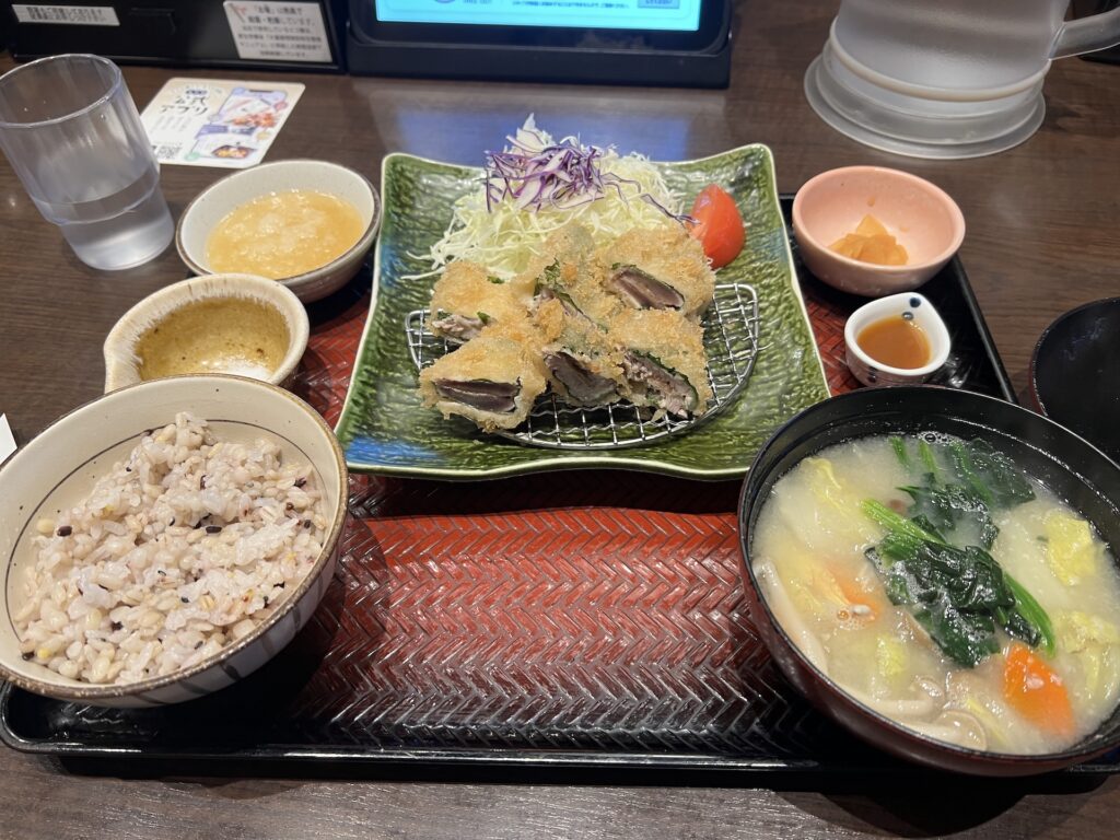 晩ごはんは大戸屋で季節限定メニュー「鰹の梅はさみ揚げ」が始まったので発寒イオンに行く、大戸屋は並んでたけど5分くらいで呼び出された。どうも店の前の椅子に座ってる人の半分は休憩所だと思ってるっぽい。