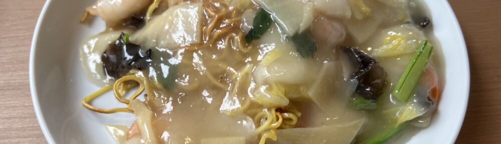 おひるは徒歩で外出して久々に「中華厨房かなめ」さんを訪問。満席で15分くらい待たされる、待ってる間に先に注文、「えびあんかけ焼きそば(内税1,100円)」と「単品ぎょうざ(内税140円)二個」にしておく。席に通されて5分くらいで焼きそばが来た。
