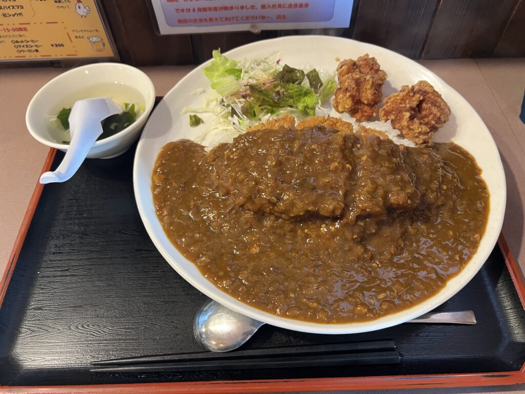 カレーは挽肉が入ってて、麻婆豆腐の餡にスパイスを入れたみたいな味がする。カツはそんなに厚くないけどカレーとの相性が良い。割と難なく完食、美味しゅうございました。量だけで言えば前回食べた炒飯セットの方が多いと思う。