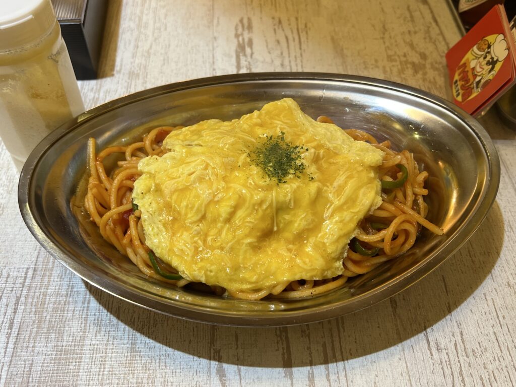 しばらく待つとナポリタンが来た。400gってどの程度かと思ったら思ったよりは少ない、経験則で言うと乾麺で180gくらい? 美味しい、オムレツトッピングで正解だった。ただどちらかというと前回食べたオムハヤシのがおすすめ。