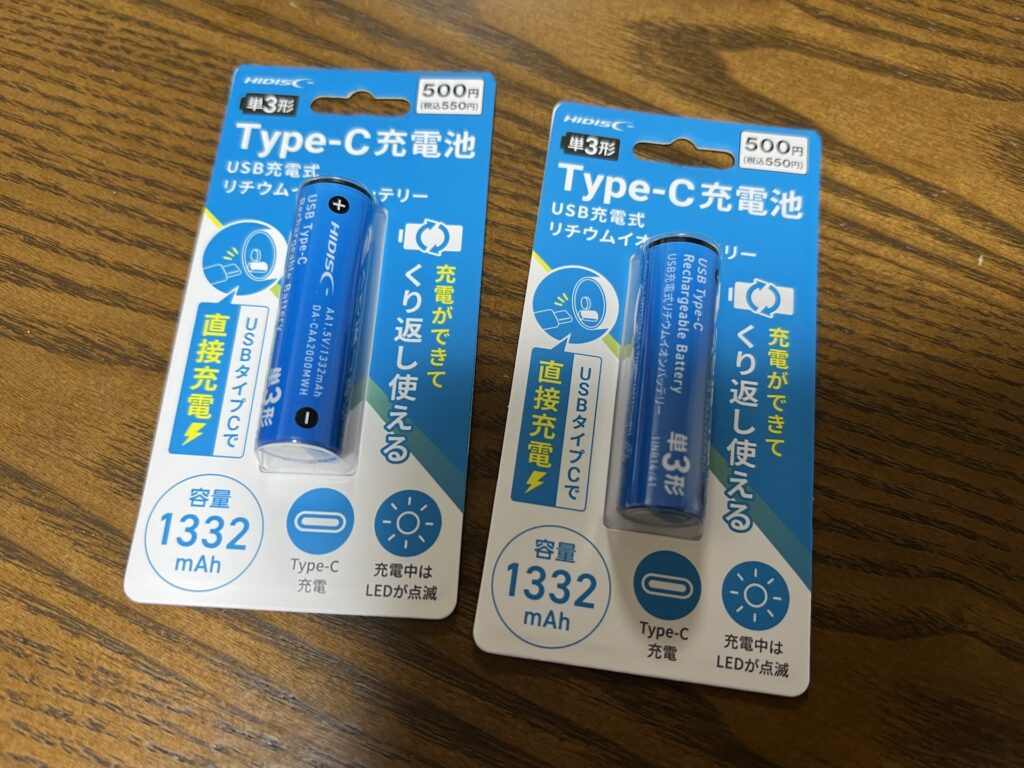 買っておいたダイソーの単三型リチウムイオン充電池を開けてみる、一本ごと販売の内税550円で二本購入してみた。念の為パッケージを保存しておきたいのに、ブリスターを綺麗に剥がすのが無理なパッケージなのはどうかと。結局裏面の説明だけ剥がして保存して充電しておく。